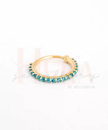 Ouro Amarelo 14K; Medida: 1.2 x 10mm; Niquel Free; Cristais Turquesa; Disponível também sob encomenda via WhatsApp.