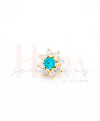 Ouro amarelo 14K; Para rosca interna; Medida: 14mm; Niquel Free; Cristais coloridos; Disponível também sob encomenda.